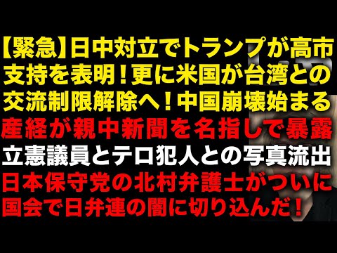 【緊急】トランプが高市支持で中国手が出せずと米国メディア報道!更に米国が台湾との交流制限を解除、中国完全に孤立 産経が親中新聞たちを晒す 北村晴男弁護士が日弁連を斬る (TTMつよし youtube.com/watch?v=Hbem7z…