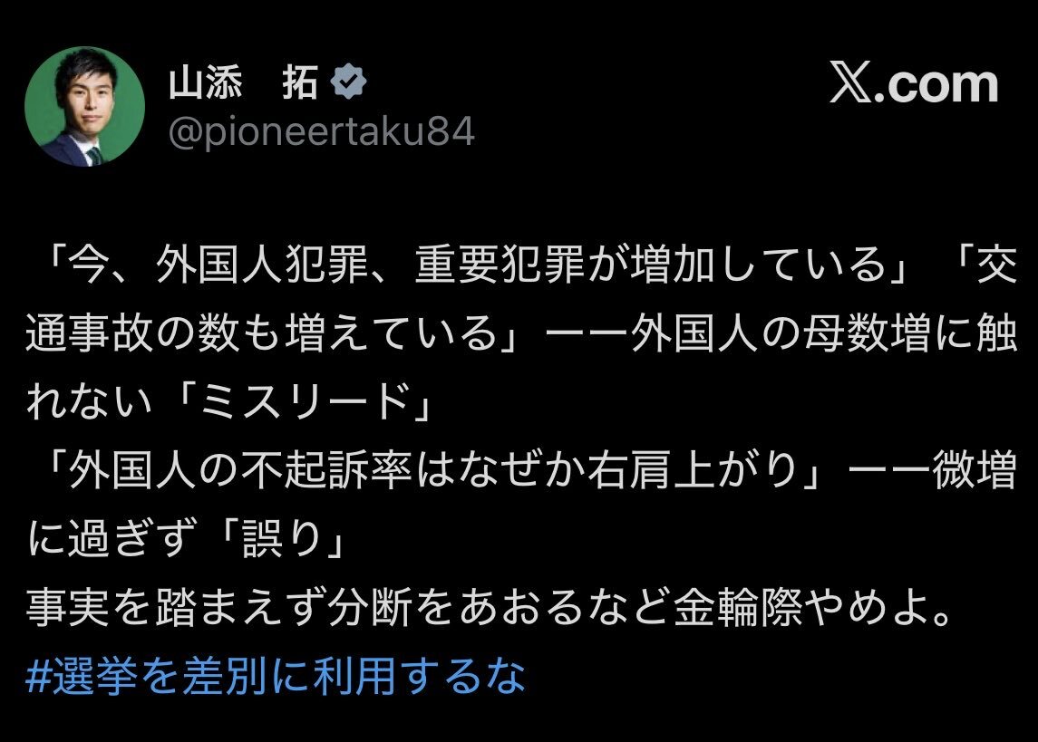 共産党の山添拓が、参院選で発言した 『外国人犯罪が増えているはミスリード』 がデマだったことが証明されてしまう 外国人の犯罪率は日本人の1.72倍だってさ 選挙中に参政党をデマで攻撃した責任取れよ x.com/sankei_news/st…