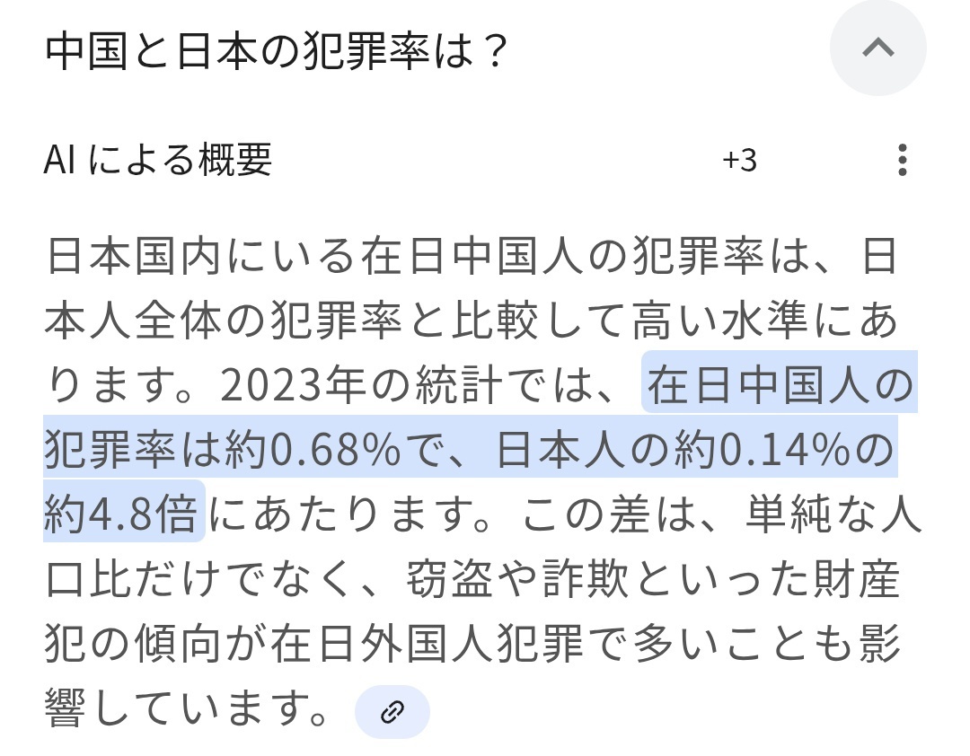 返信先:@kinnikuben外国人の犯罪率は日本人の1.72倍。そして日本人の犯罪のうち多くが帰化人