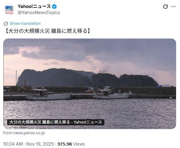 大分の大規模火災 離島に燃え移る - Yahoo!ニュース share.google/tMSXFA6hTzduUz…