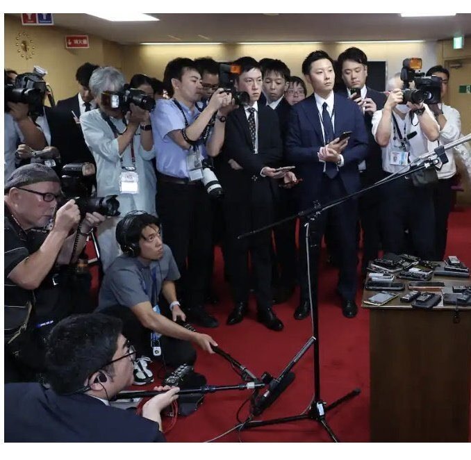 マスコミ間で雑談する時は大体こんな感じです。 #支持率下げてやる #支持率下げることしか書かないぞ #イヤホン付けて麻生さんから指示聞いたりして #日テレ #時事通信 #カメラマン #謝罪会見 #高市早苗