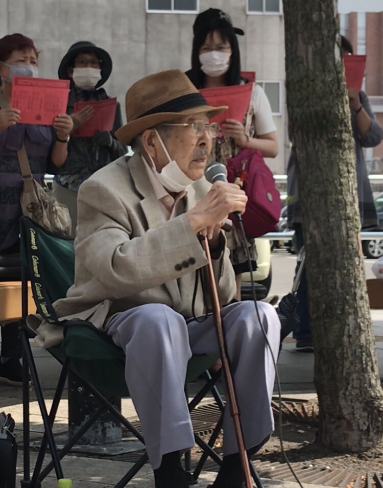 敗戦記念日、街頭で召集令状「赤紙(あかがみ)」を紹介する活動がありました。#生活図画事件 の犠牲者菱谷良一さんがスピーチ。戦車の下で自爆する運命だったが1945年8月15日、天皇の一声で生きられることになった、「平和と自由」は先人が血と涙で勝ちとったことを忘れないで欲しい、と語りました。 pic.x.com/C5b9Dc1H7p