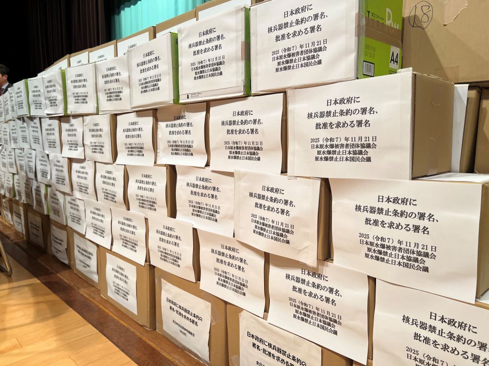 日本原水爆被害者団体協議会(日本被団協)などは21日、日本政府に核兵器禁止条約への署名・批准を求める約345万人分の署名を外務省に提出した。> 日本被団協 非核三原則の堅持求め国会近くで集会 署名も政府提出|朝日新聞(20251121)asahi.com/articles/ASTCP…