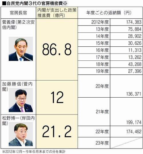 #官房機密費 歴代官房長官直近3代の金額を見ても 菅義偉の使い方は群を抜いている🤷 安倍政権下で何が行われていたのかの鍵は官房機密費を解明することだろう 👇 pic.x.com/h0gqr84GaO x.com/2010ameame/sta…