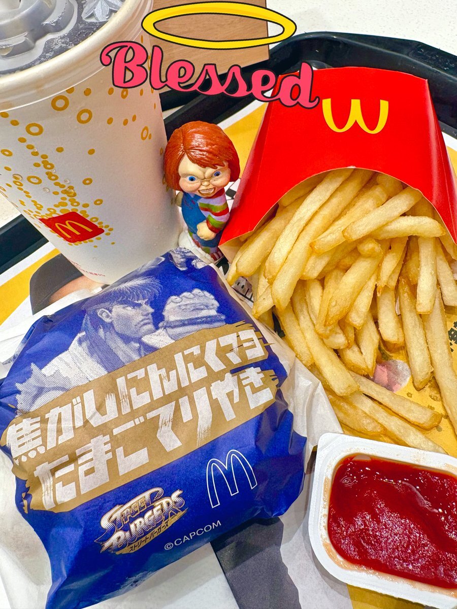 今日の晩ご飯は… 『マクド〜‼️』😆 月見バーガーが終わり STREET FIGHTERとの初コラボとのことで 『焦がしにんにくマヨたまごてりやき』を セットで買ってみた❣️🥰 後は いつものスパチキとナゲットで完璧〜‼️🤣🤣🤣✌️ いただきまぁ〜す❣️☺️☺️☺️ pic.x.com/yd8HcUlODD