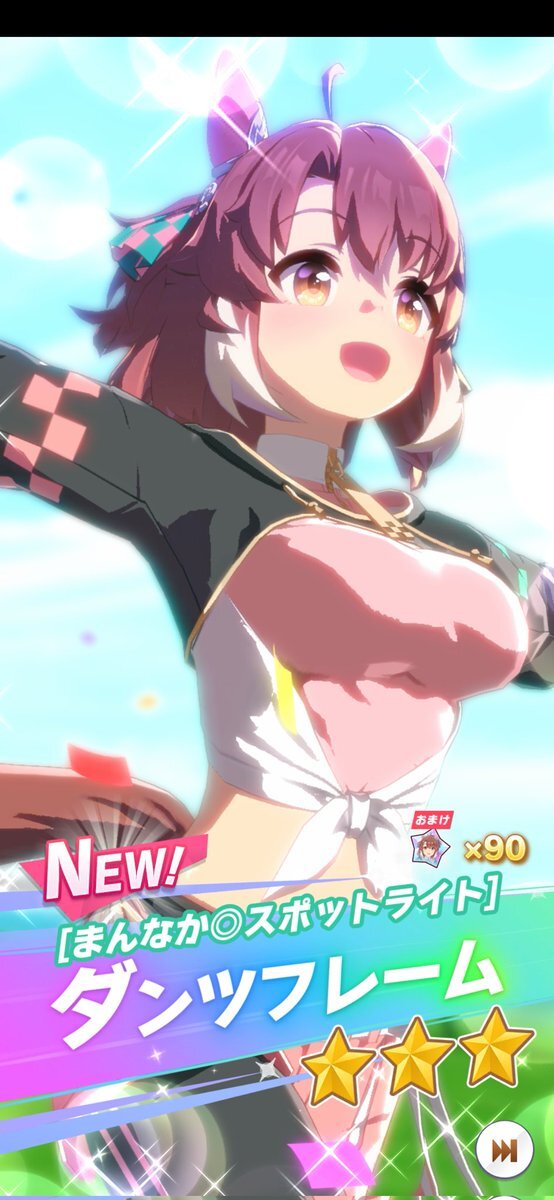 よっしゃーー!ダンツフレームちゃんイッパツお迎えーー!可愛い〜♥ ゼロ年代後半の競馬が一番好きなので、タキオンはじめ扉世代は種牡馬として影響大。その中にダンツフレームの子が居てくれたら…… ウマ娘では幸せになってほしい……いや、する! #ウマ娘 #ダンツフレーム pic.x.com/Z5YPRhBzWT