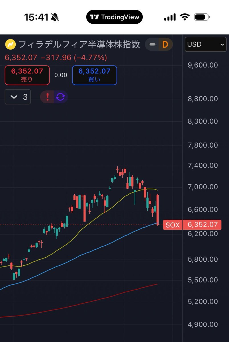SOX指数は一気に5%近く下げて、50日線を大きく割った。| pic.x.com/EMgqD0n7RH