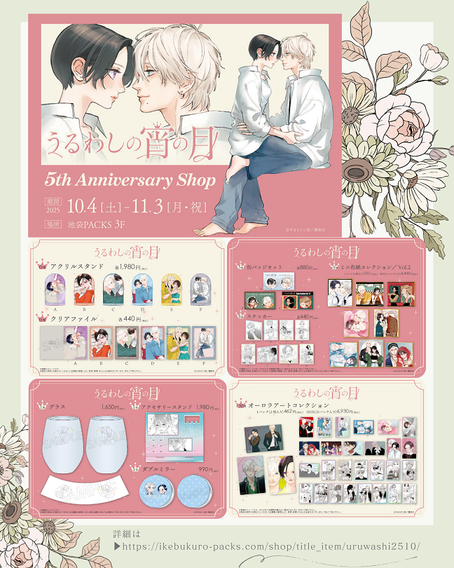 \うるわしの宵の月/ 5th Anniversary Shopに行ってきました!! 中に入ると今までの名シーンがずらり!!! 店内には素敵なグッズやメッセージボードも✨ ご来店お待ちしております♡ 📅25/10/4(土)~11/3(月) 🗺【東京】池袋PACKS 📅25/12/6(土)~12/28(日) 🗺【梅田】梅田PACKS 👇詳細👇