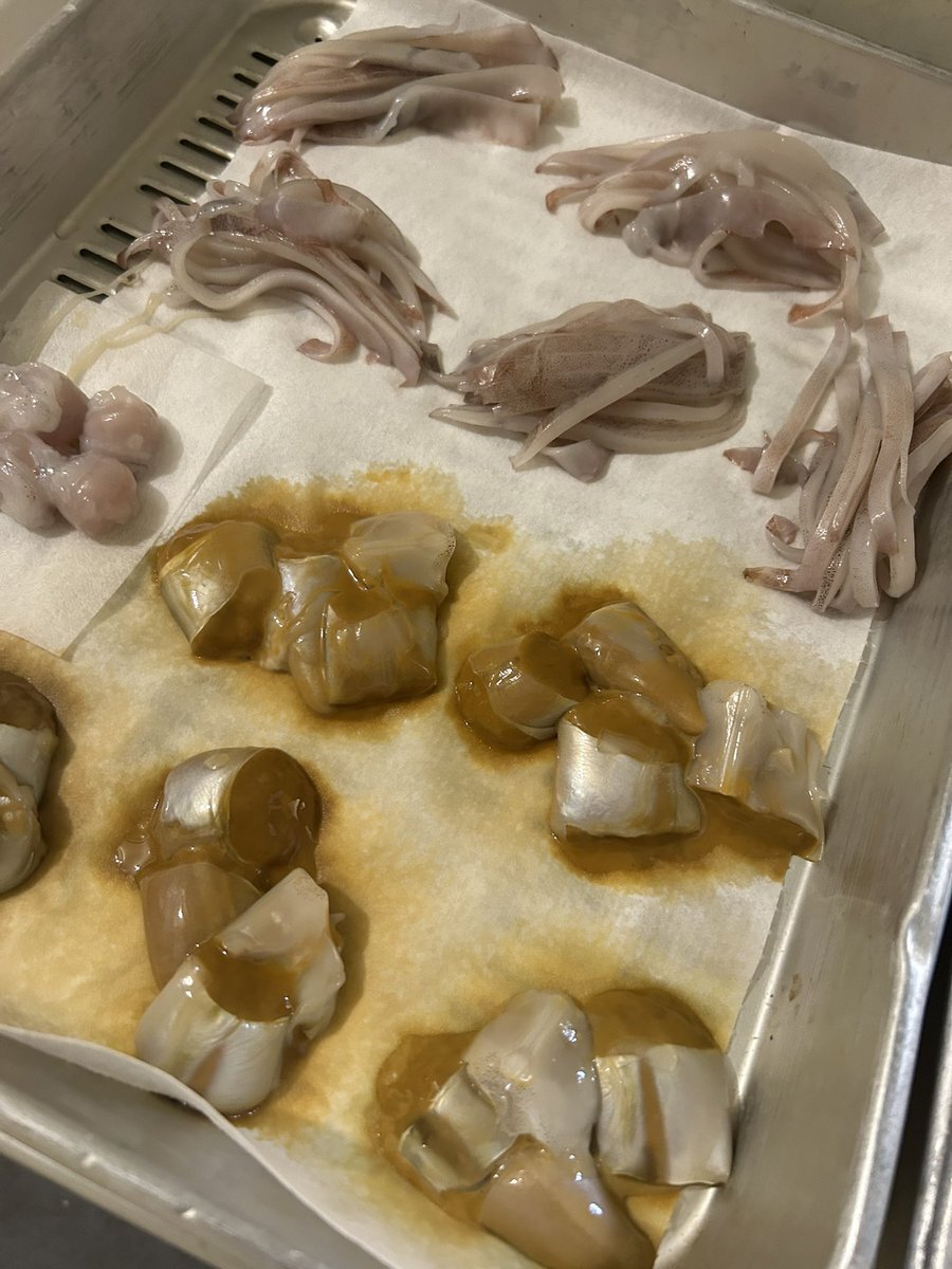 こんにちは😊 今日は水曜日恒例のお寿司の日🍣 メインは本マグロのヅケになります😋 そこに神経締めのヒラメも入ります😉 さて今日もスルメイカお刺身完全版をお作りしています🦑 既にご予約🤙📱がありますが、すぐにお渡しできるよう今から並べますね🤗 今日もよろしくお願いします🥰 pic.x.com/jInpnygKGB