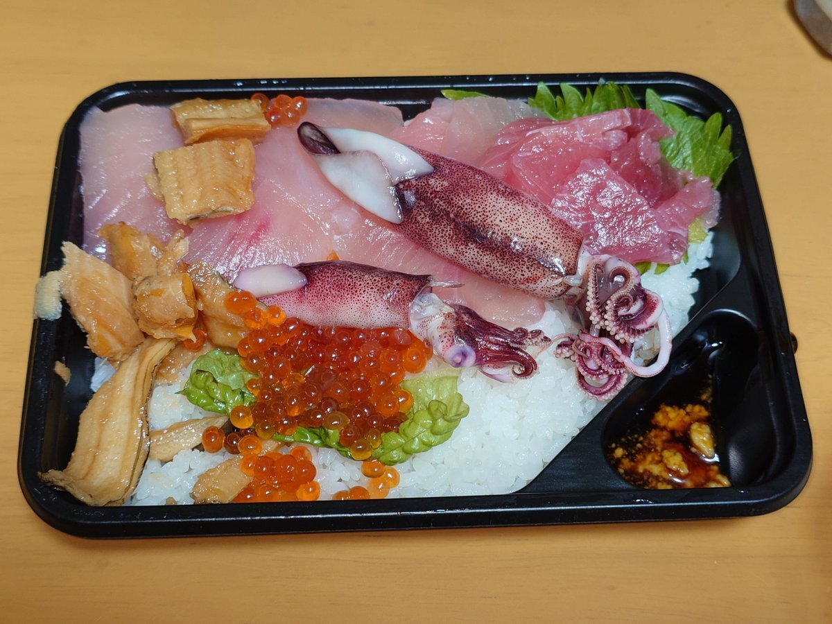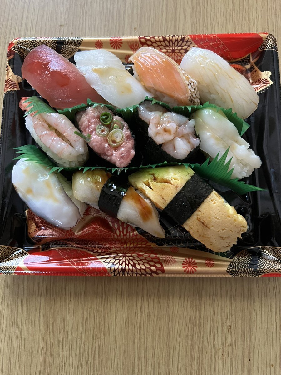 毎週水曜日は地元系スーパー「つかさや」でお寿司の日。 通常¥690の寿司弁当が当日限り¥500! しかも中々豪華。 全体にネタが上物揃いで、私のに入ってる赤白のフレークはカニカマやなくて蟹やったし、母のにはホタルイカが丸2杯とイクラ。 蟹キライやから母にやったけど、母も驚いてた。 pic.x.com/KBdpUFRnoX
