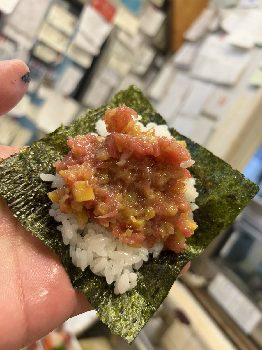 今日も午後ラッシュ他たくさんのご来店ありがとうございました🥰 お寿司の日の昨日、喜んでもらえたトロタクをお客様のお時間と自分の動ける時間に合わせてその場で食べられる「本マグロトロタク巻き」としてお出ししたいなぁと思います😋 シャリ有りシャリ無し考えてますのでお見知り置きを🙂↕️ pic.x.com/Vs2Fx6hxgT
