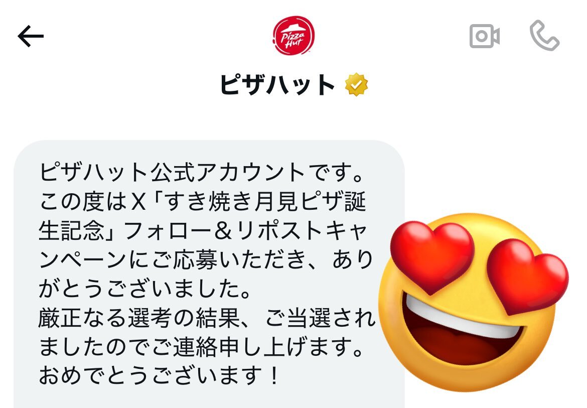 ピザハット 様 (@Pizza_Hut_Japan) 「すき焼き月見ピザ誕生記念」フォロー&リポストキャンペーンにて 『ピザハットオンラインギフト5,000円分』をいただきました✨ 今週末は家族でピザ🍕パーティーにしよう🤤 ありがとうございます😊 pic.x.com/yPoEcn1VIY