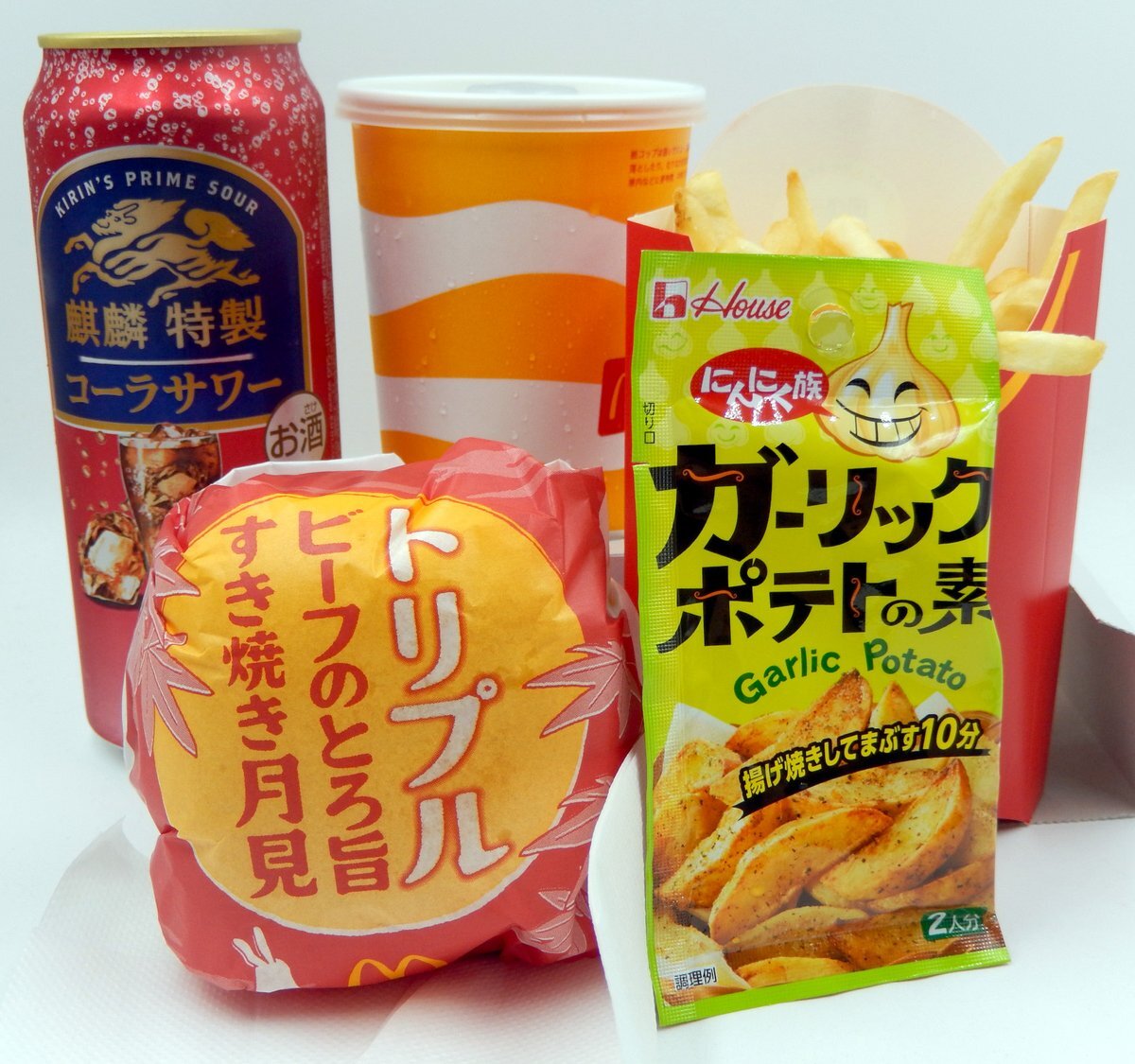 ・すき焼き月見,プリプリエビプリオ,三角チョコパイ(マクド) ・月見フォカッチャ,メンチカツチーズ,おさつボール(モス) ・マロンソフト(コストコ) ・月見和カツ,月見ツイスター(ケンタ) ・牡蠣フライ(大戸屋) ・おさつバター,ティーイットアップ(31) ・焼き芋シェイク,辛旨すき焼き牛丼(すき家)