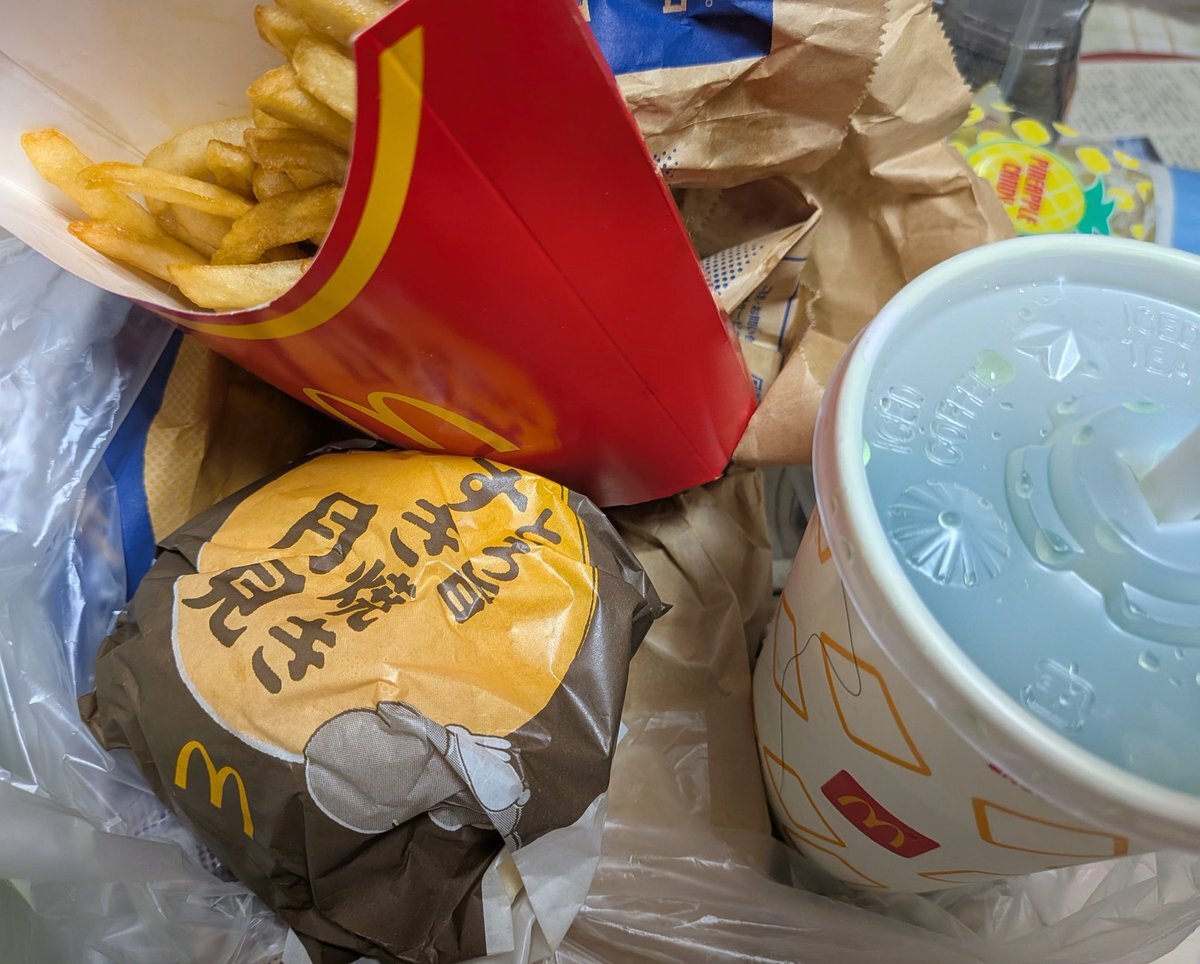 今日はもう何もしたくないので、マックのセットに美味しくなる魔法をかけて宴を催したいと思います。とろ旨すき焼き月見のマジ美味さよ。トリプルで肉感マシマシになってもう最ッ高。 てなワケで、もうどうにでもなーれ♪(コーラらしき何かをごっぷごっぷ飲みながら) pic.x.com/sUJux5CFqu