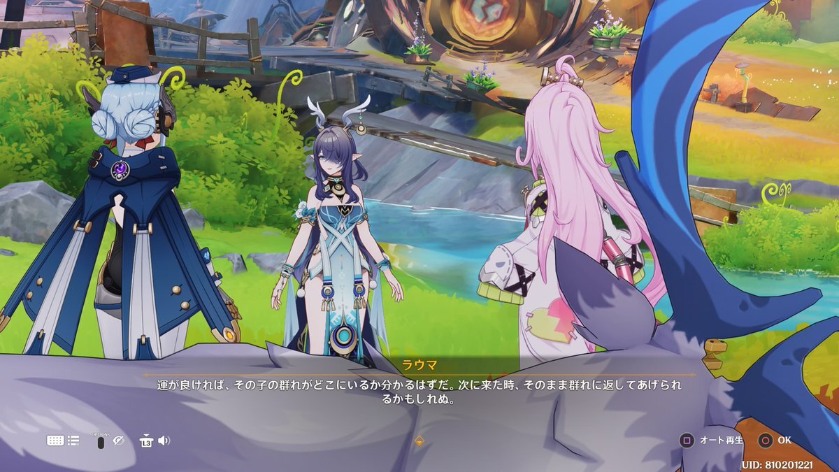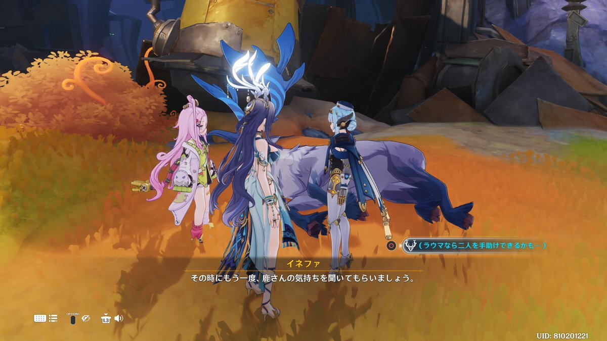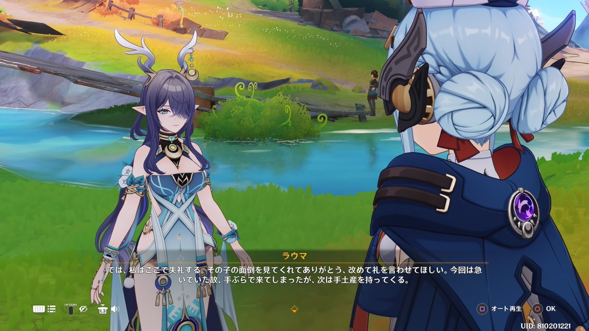 #原神 ラウマ当てる前にアイノの、のんびり旅行記にてラウマいないので進まなかったが、大社の願掛けでアイノ選んだら同じのが来て、現在はラウマいるから話進んだのがやっと見られた(`・ω・´)b pic.x.com/sPRsTrjDOl