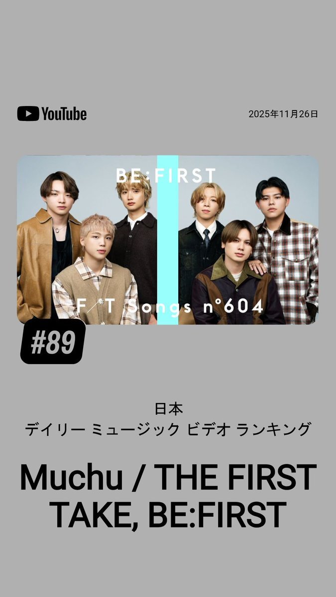 波うららかに、めおと日和 主題歌 第67回輝く!日本レコード大賞 「優秀作品賞」 BE:FIRST - 夢中 / THE FIRST TAKE youtu.be/rVdKC3PU434 89位 ↓ (84) Total 32日 #めおと日和 #THEFIRSTTAKE #BF_夢中 #BEFIRST @The_FirstTake @meotobiyori pic.x.com/qbr8tSZbwj