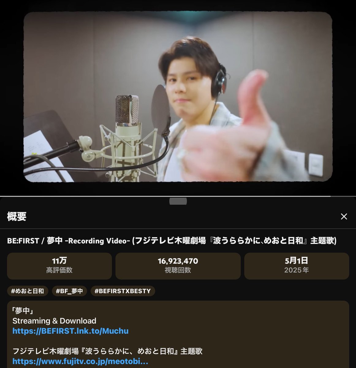 ベスティならきっと出来る‼︎‼︎‼︎ 年末までに 20,000,000回再生🎵 トライしてみませんか⁉️ #BF_夢中 #BEFIRST BE:FIRST / 夢中 -Recording Video- (フジテレビ木曜劇場『波うららかに、めおと日和』主題歌) youtu.be/TpuNjlGbs6o?si… @YouTubeより pic.x.com/8hVgJtH893