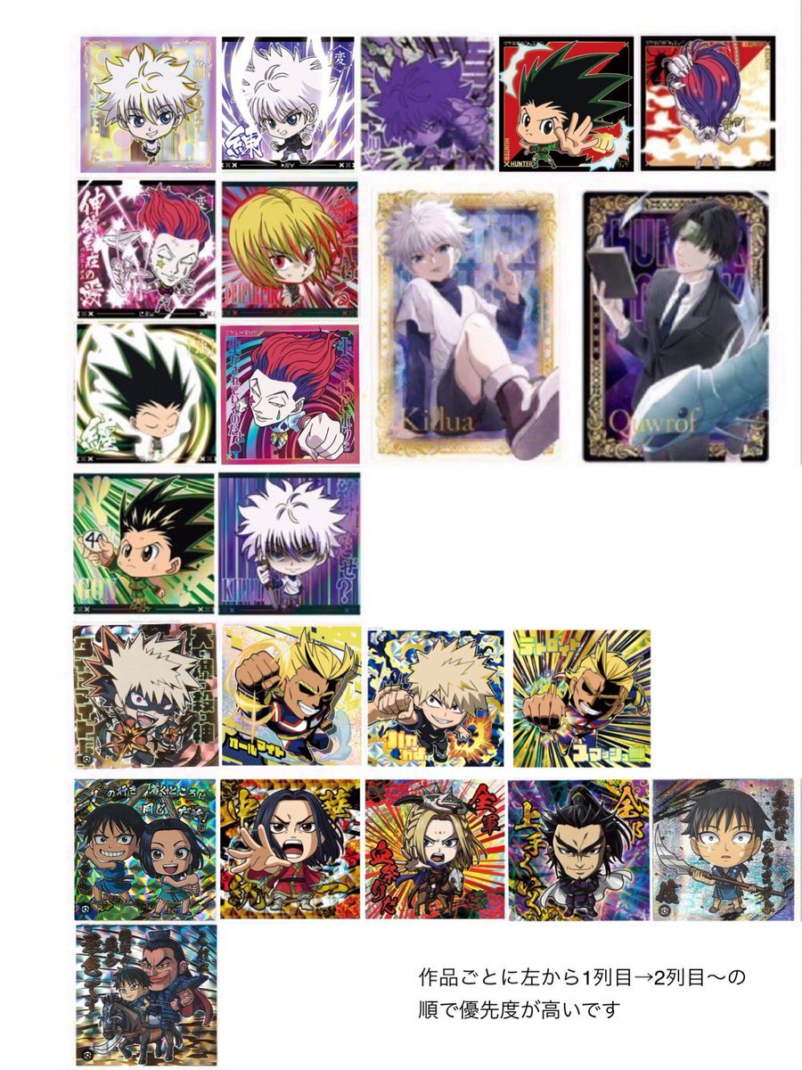 HUNTER×HUNTER ハンターハンター チェンソーマン プリキュア エヴァ ちいかわ サンリオ ヒロアカ ワンピース キングダム 鬼滅の刃 シール ウエハース 交換 x.com/ghkii22/status…
