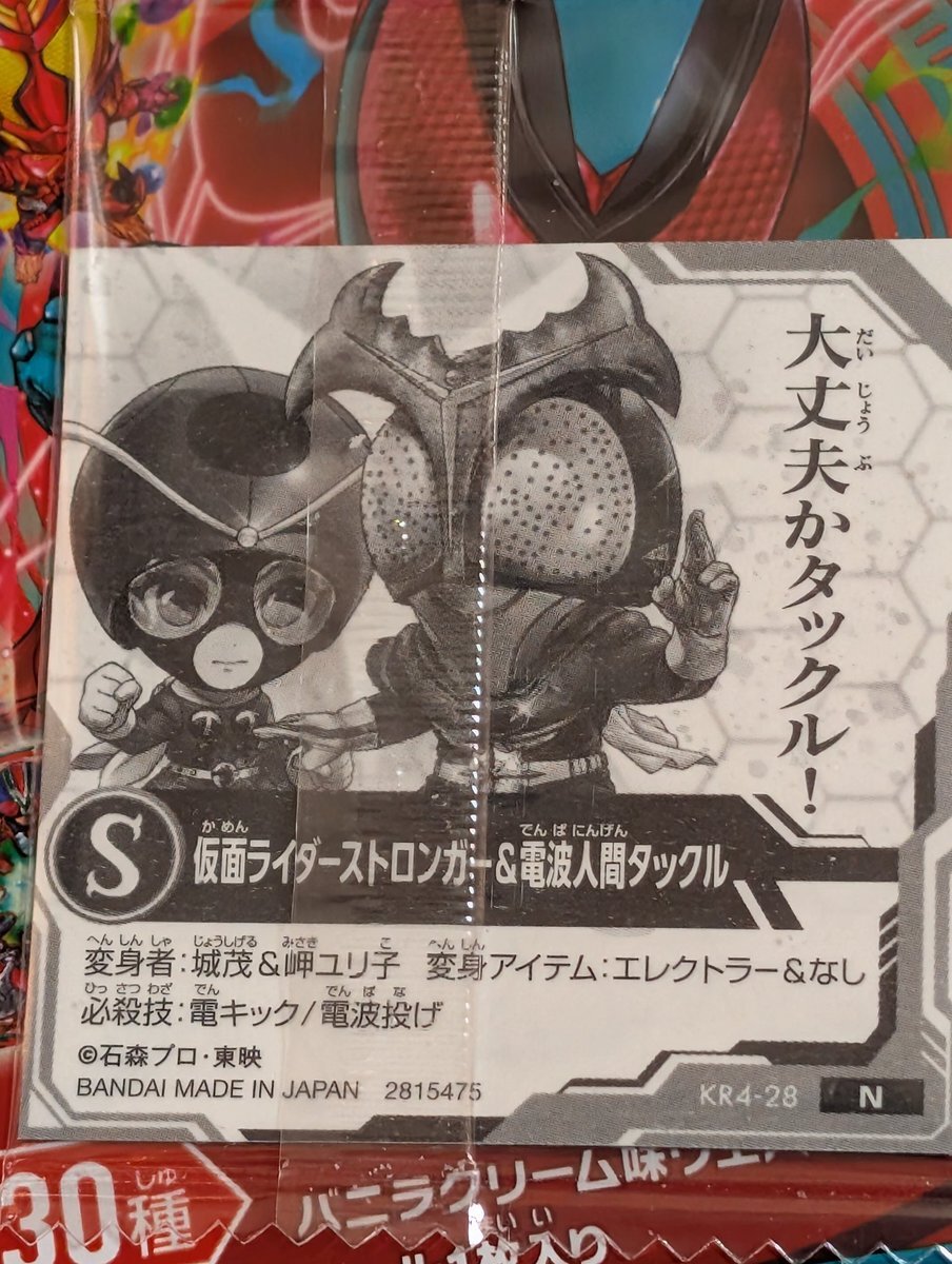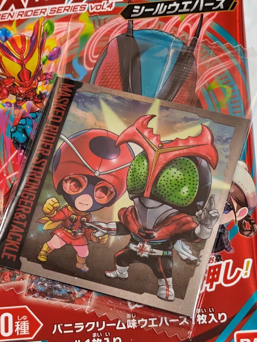 #仮面ライダーウエハース #仮面ライダーストロンガー 仮面ライダーウエハースをBOXで買いました❗️😀 左側の列、六番目は、仮面ライダーストロンガーとタックルのシールが入ってましたね❗️😀 pic.x.com/xYfrLyLGoU