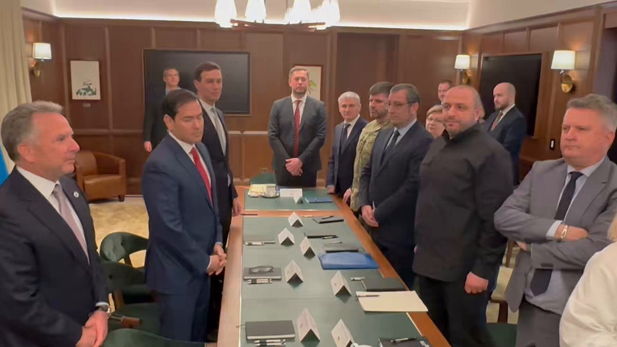 報道によって会合場所がまちまちだけど、ウクライナ和平案についての話し合いが始まってるっぽい アメリカ側はルビオとウィトコフとクシュナーがいて、ウクライナ代表団にはウメロフがいるね ルビオ国務長官 x.com/ralakbar/statu…
