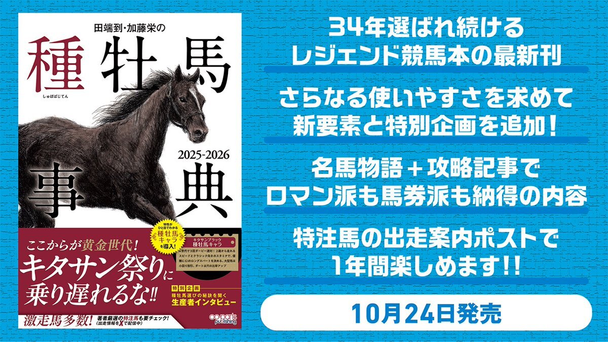 【書籍『田端到・加藤栄の種牡馬事典 2025-2026』発売記念キャンペーン】 書籍『田端到・加藤栄の種牡馬事典 2025-2026』をご購入いただいた方の中から、抽選で5名様に2970円分のアマゾンギフト券をプレゼントいたします。