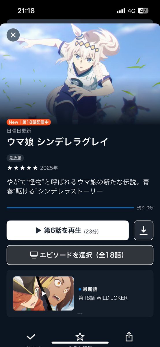今日の移動中は ウマ娘シンデレラグレイ を全部見ました カサマツ編、めちゃめちゃ泣いた