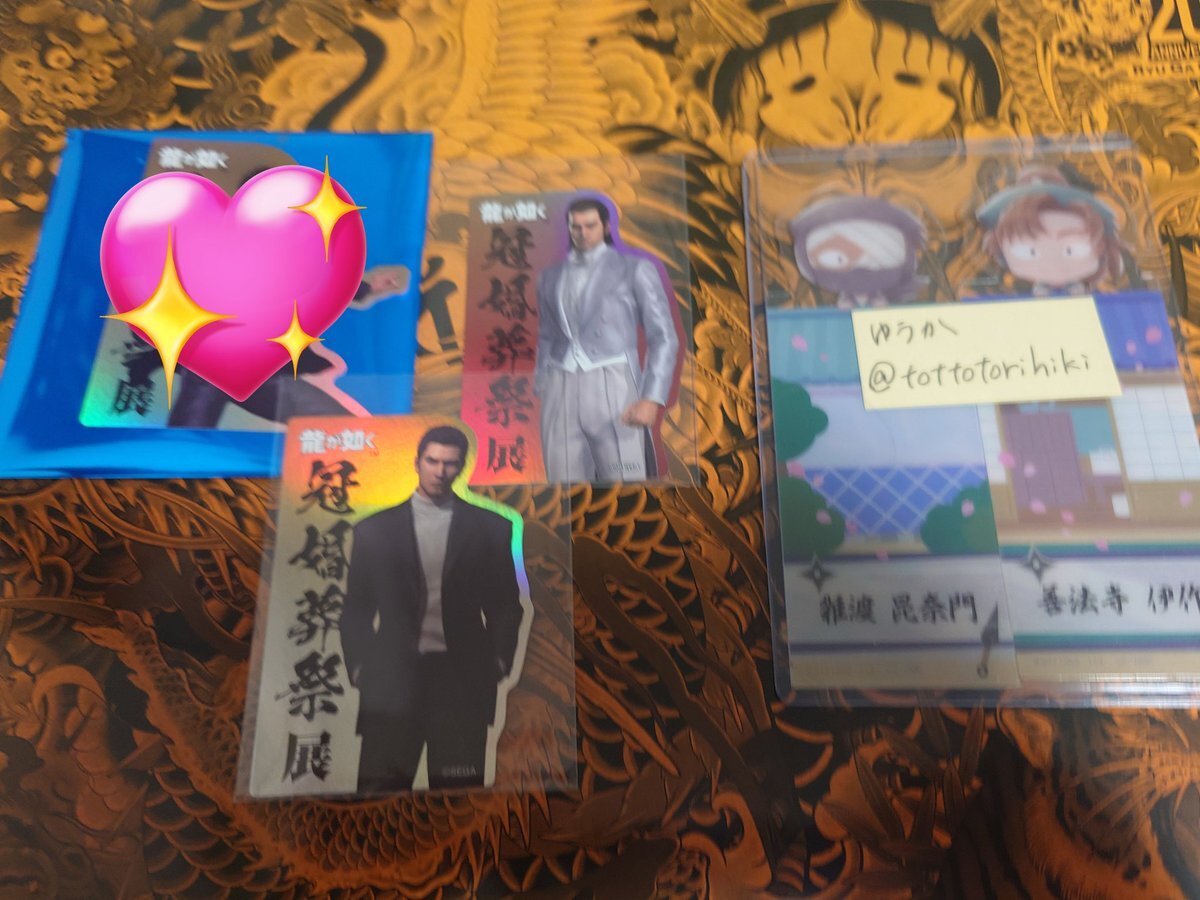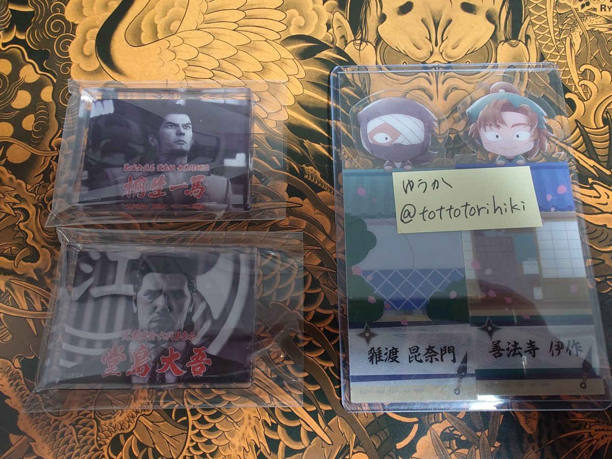 【交換】龍が如く 冠婚葬祭展 譲 ▶ダイカットステッカー 桐生(冠)、錦山 ▶アクリルブロック 桐生、大吾 ▶コマフィルム風コレクションカード 画像のもの 求 ▶ステッカー、アクリルブロック ソンヒ ▶コマフィルム 👑ロッカー、演説、コミジュル ▶ショットイメージカード 未所持のノーマル pic.x.com/ecJ44kXEqR