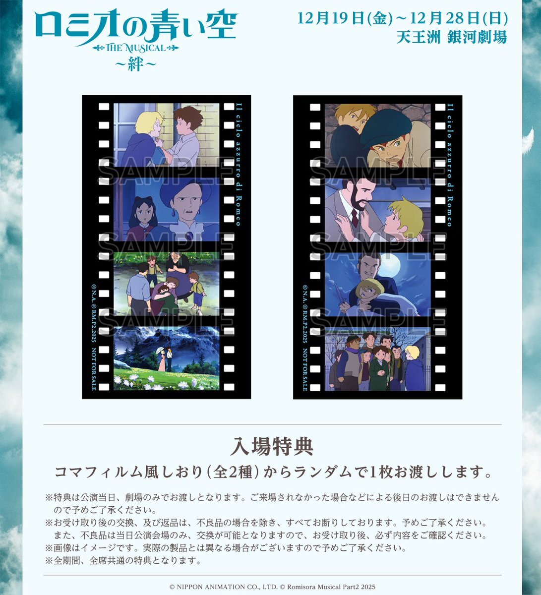 🎉#ロミミュ 入場特典情報解禁🎉 【コマフィルム風しおり(全2種)】からランダムで1枚お渡しいたします🍏✨ 詳細はこちら👉romisora-musical.com/ticket pic.x.com/k975oZiezs