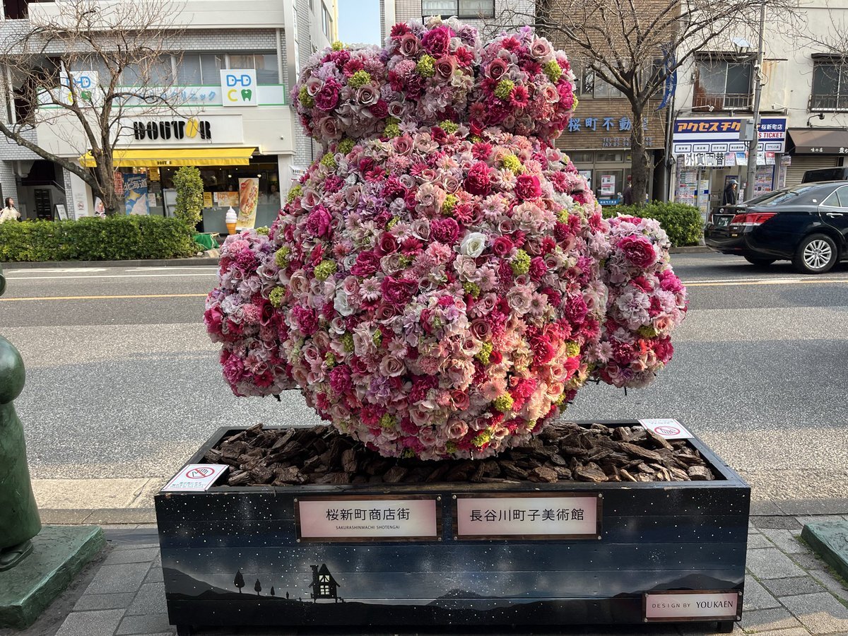 花のお江戸東京漫遊記⑮ 渋谷駅から東急田園都市線で桜新町駅に着いた。駅前の「桜の杜 伊勢屋」でやきだんごを購入。160円。世田谷区桜新町は、サザエさんの生みの親である漫画家の長谷川町子氏が住んでいた街。街なかには、サザエさん一家の銅像、サザエさん通り、長谷川町子美術館と記念館がある。 pic.x.com/F6HYCqFJLb