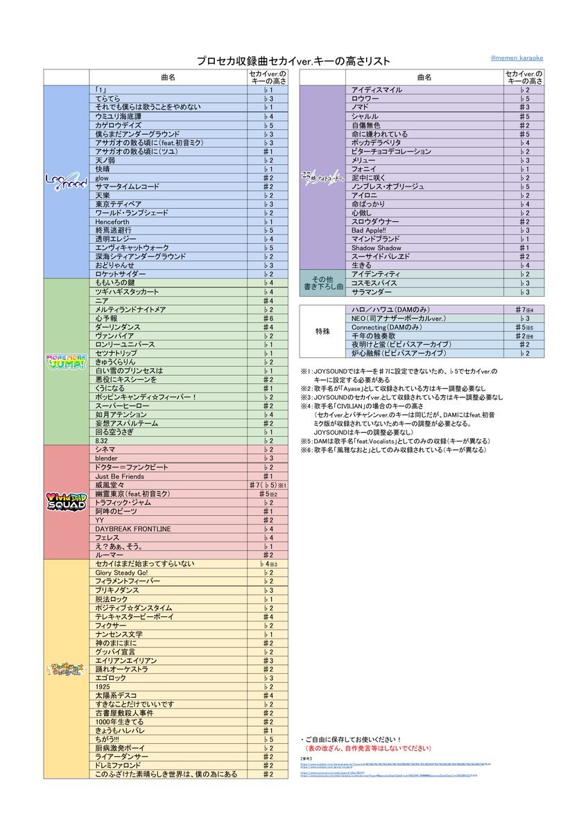 【11/28更新①】 カラオケの機種選びやキー調整の参考にどうぞ🎤 🆕新規配信曲 <DAM> 🟡サヨナラ天国また来て地獄 🔷怪獣になりたい 🔷ペンタトニック (11/27~順次配信) 🆕セカイver.のキー なし #プロセカ pic.x.com/5mcujksoXJ