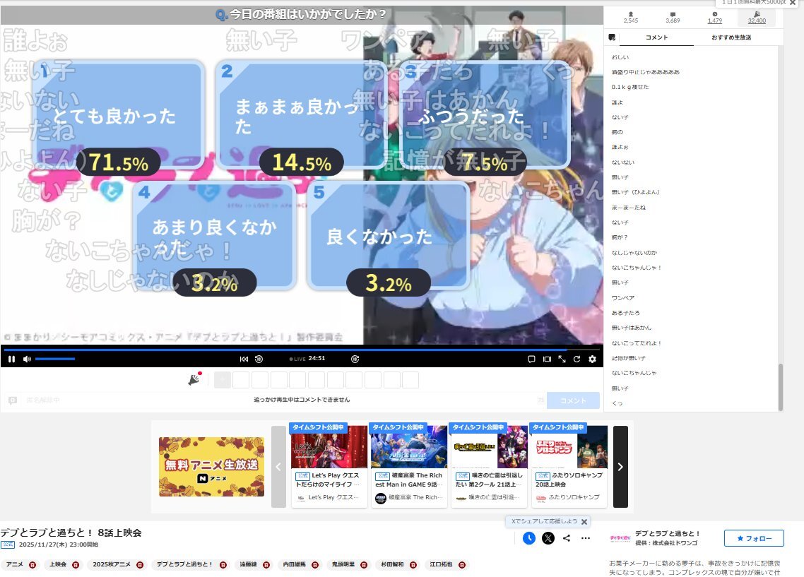 デブとラブと過ちと! 8話上映会 / ニコ生アンケート結果 live.nicovideo.jp/watch/lv348889… #デブラブ pic.x.com/aHwpcFOUqf