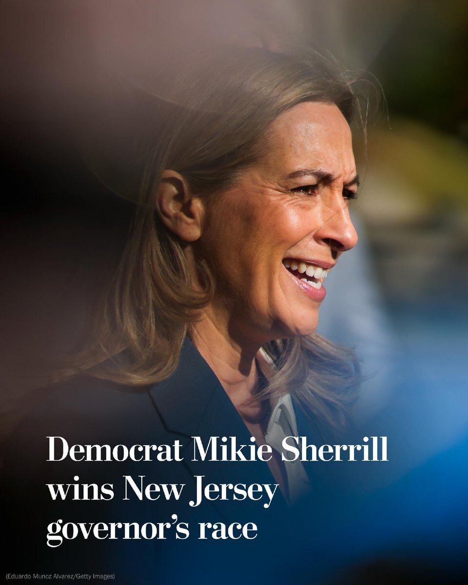ニュージャージー州知事選、民主党のマイキー・シェリル下院議員(女性、元海軍ヘリコプター・パイロット)が当選。 x.com/washingtonpost…