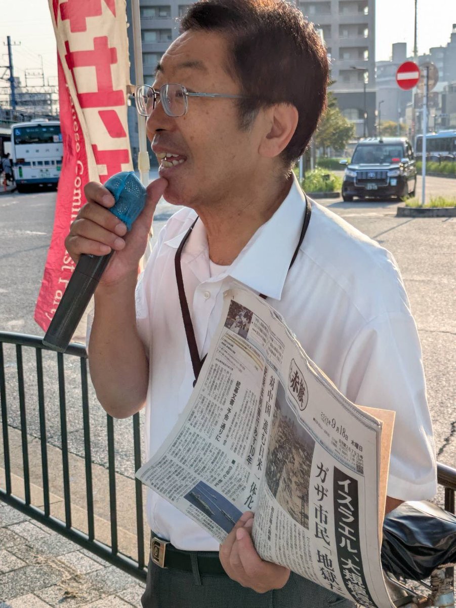 今朝は、定例のJR金町駅での朝のごあいさつ。 今朝の「しんぶん赤旗」の「イスラエル、大規模侵攻」の記事を紹介。合わせて、12日の国連総会でパレスチナの国家承認とイスラエルとの2国家共存を支持する「ニューヨーク宣言」が、賛成多数で採択されたことなどをご紹介しました。 pic.x.com/SfinNMtI8D