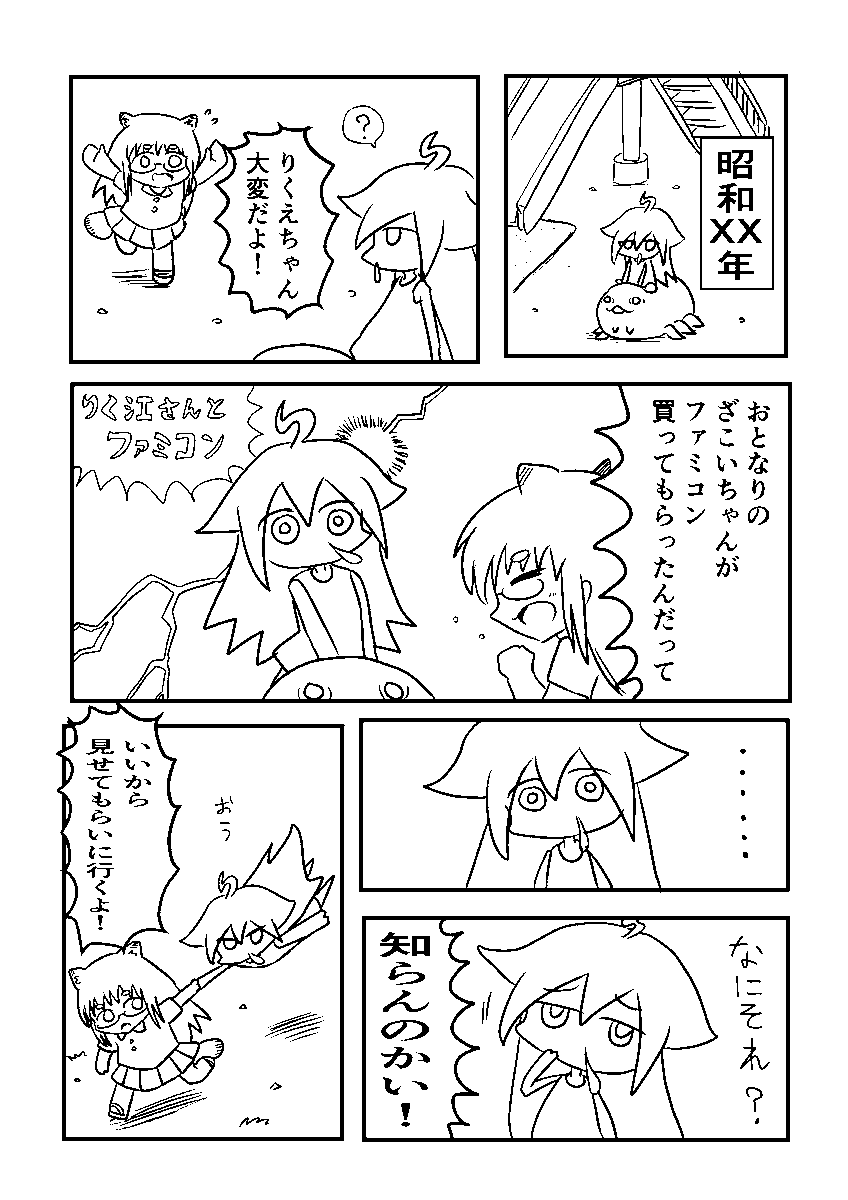 今日はファミコンの日らしいので同人誌用に描いたりく江さんとファミコンの出会いを描いたまんがみたいなのをおいておきますね(1/2) pic.x.com/vuoMeOw85M