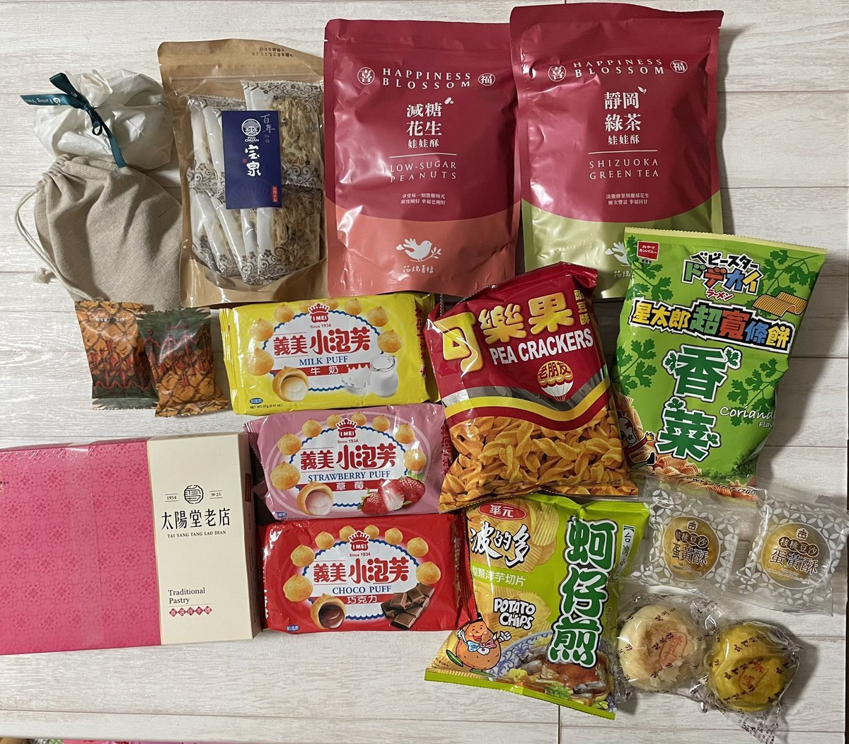 こちらは台湾のファンの皆様からの差し入れ✨ なんと、イベントでは運営さんがパズルも作ってくれて、神の写真はわかるけど夫の写真はマジ意味わかんない😂 ベビスターで思い出したけど、たべっ子どうぶつ買ってきてもらえばよかったなー! pic.x.com/Hr8lB7lt0X