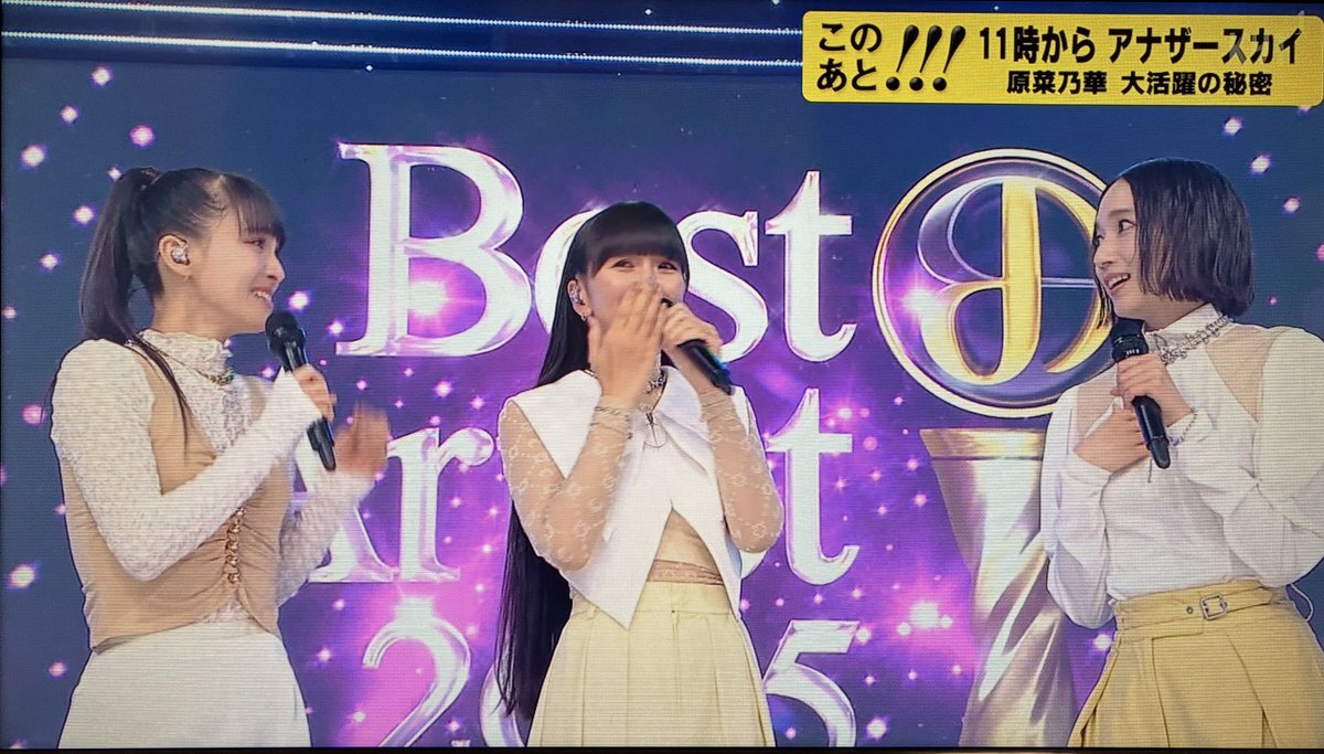 Best Artist、Perfume二曲目の『Dream Fighter』もリアタイ出来た。ファンクラブ会員番号二桁台の古参さんが呼ばれたらしい。古参ファン集結はサプライズらしく、パフォーマンス前のあ〜ちゃんの目は今にも涙がこぼれ落ちそうなほどウルウル。こっちももらい泣きした😭