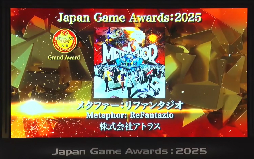 【祝🎉大賞❗️❗️❗️❗️❗️】 国内最大のゲームアワード「日本ゲーム大賞2025」にて 『メタファー:リファンタジオ』が年間作品部門の頂点である 🏆大賞🏆を受賞いたしました❗️ 皆さまの多大なるご声援、心より御礼申しあげます。 #TGS2025 #メタファー