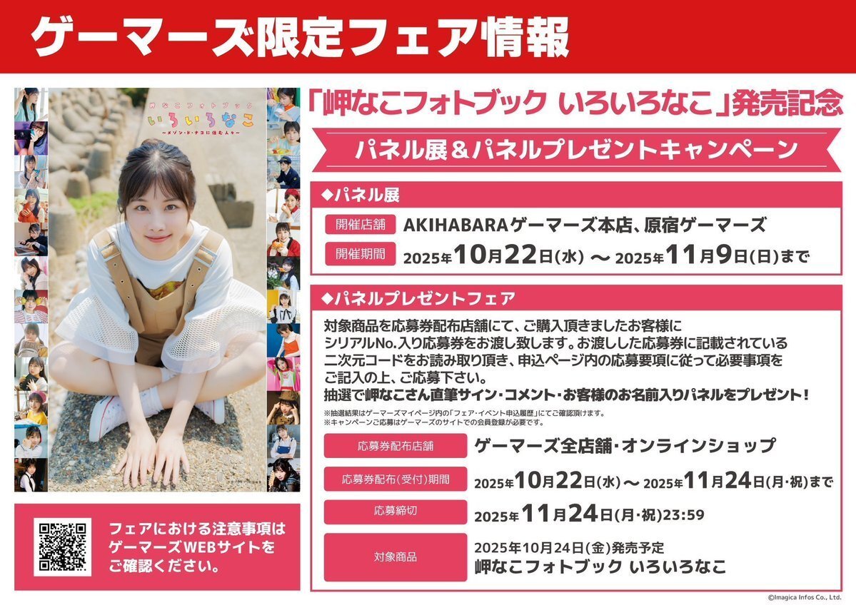 【📚書籍📚】 📣シリアル配布:11/24(月)まで📣 🟡#岬なこ フォトブック いろいろなこ🟡 ‼️✨好評発売中✨‼️ ☺️お取り寄せ分の引取もお待ちしております☺️ 📅引取期限:11/24(月)まで ※ゲーマーズ限定版の店頭分はお品切れ  二次受注分は12月上旬にお渡しとなります pic.x.com/j6NrsKnYtJ
