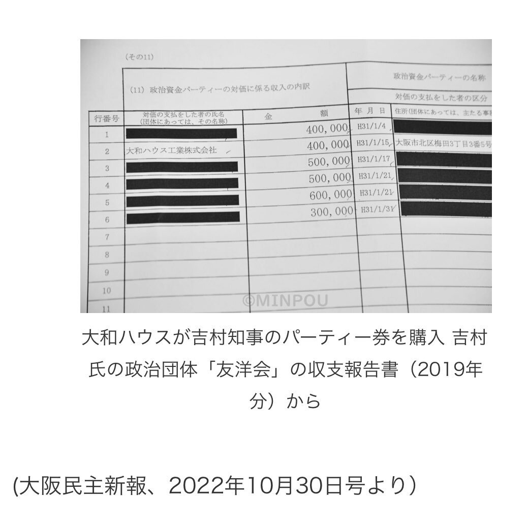 カジノに出資し万博のパビリオン建設を担う大和ハウスから政治資金パーティで献金を受けたのが、維新の会の吉村洋文さん。 「インフラとして万博を利用しよう」と大阪府の会議で発言したのが、府と市で万博関係の役職を務める森下竜一さん。 事実を知らない方々は まだまだ沢山いるようですね…