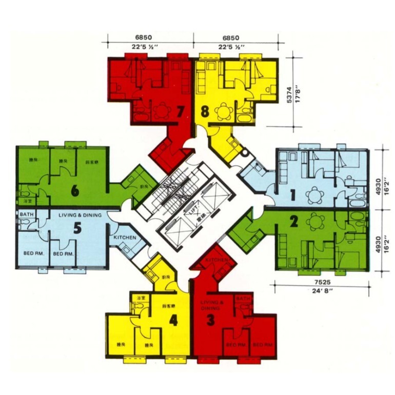 香港のタワマン火災、平面図がコレらしい。 各住戸3面開口採れる日本であんまり見ない面白いプランだけど、この凹んだ部分が上昇気流を発生させる煙突効果になったのかな…あの燃え広がり方、尋常じゃなかったもんな…