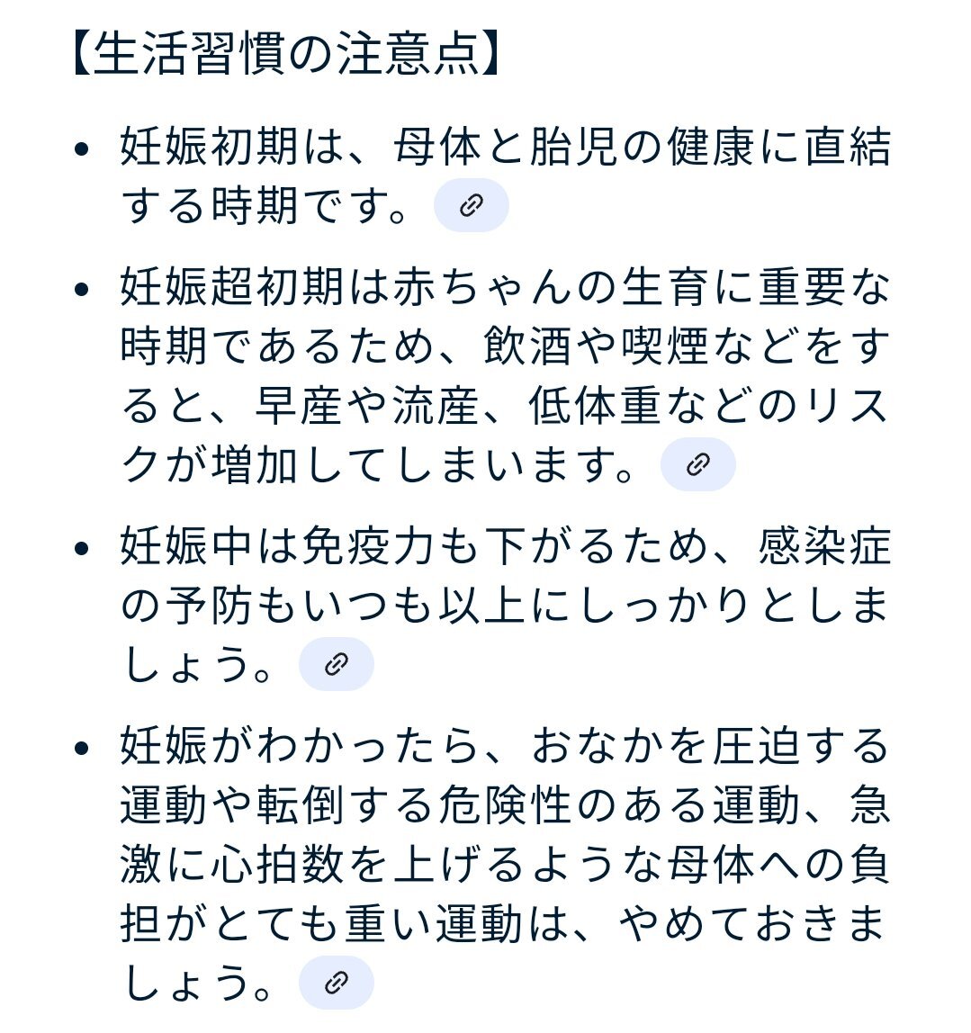 【妊活・妊娠初期 注意事項まとめ📝】 ✅葉酸をしっかり摂る (神経管閉鎖障害のリスク低減) ✅生もの・加熱不十分な食品は避ける ✅栄養バランスのよい食事を摂る ✅十分な質の高い睡眠を取る ✅市販薬・持病の薬は医師に相談する ✅決して無理をせず休息を取る ✅身体を冷やさない pic.x.com/WNUjjwCUtU