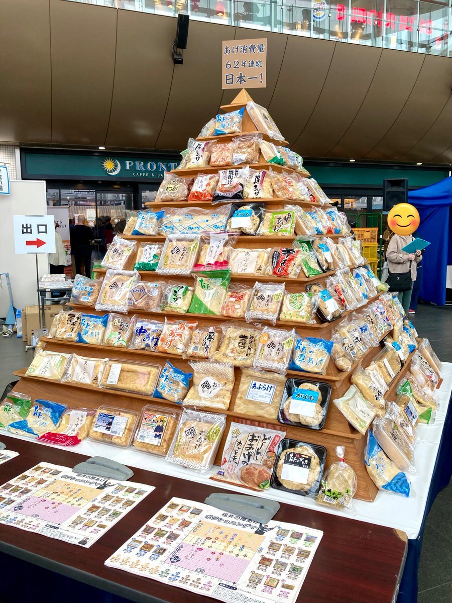 あげフェス2025@ハピテラス。#油揚げ 消費額62年連続全国1位福井の一大イベント!今年も😊あげピラミッド!谷口屋さん「竹田のあげ」使用の足羽山テラス 季節野菜のスープカレーとCoCo壱福井つくし野店 福井白ねぎうどん(ねぎはJA福井県)uma〜🍛甘味も✨あげ福クジはE賞☺️ #あげフェス #カレー #谷口屋