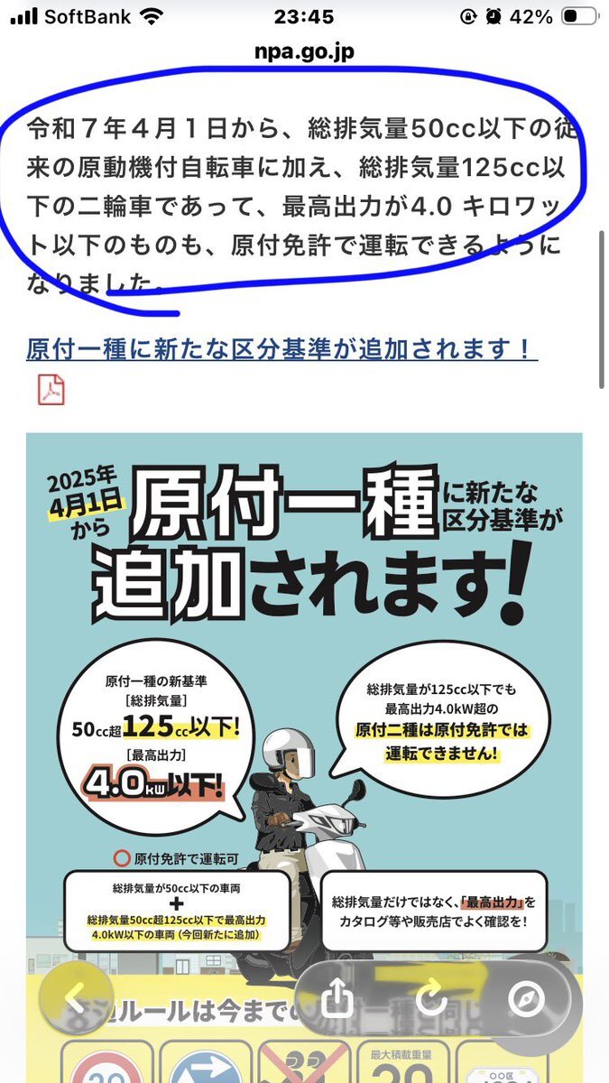 【新基準原付】原付一種に新たな区分基準が追加 総排気量50cc超125cc以下で最高出力4.0kW以下に制御した車両が「原付免許」で運転可 うちの嫁さんが乗りたがってますが…この馬力で家の前の急坂を登れるかな~🤔 jama.or.jp/operation/moto…