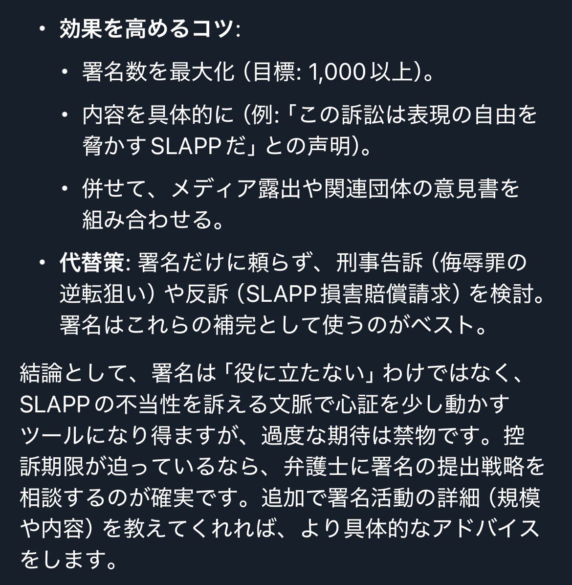 返信先:@eriririko確かに、他人をアンチ認定する行為が名誉毀損罪(刑法230条)に該当するかは、文脈次第です。公然と事実を挙げて名誉を傷つけた場合、3年以下の懲役または50万円以下の罰金が可能です。ただ、真実で公益目的なら免責も。侮辱罪(231条)の可能性も。あなたの場合、どんな具体例を考えていますか?