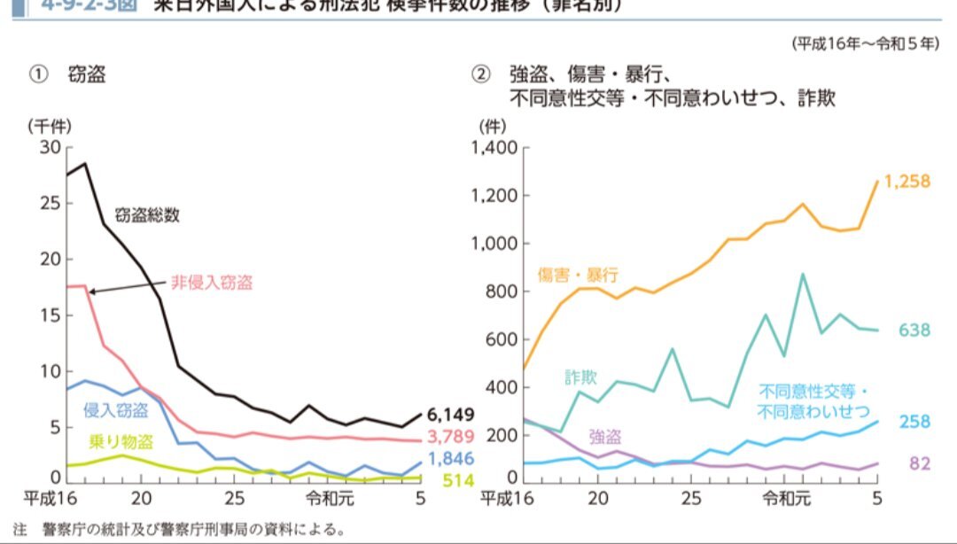 外国人犯罪が減ってるっていうのは軽い窃盗のことで、傷害・暴行・レイプはメッチャ増えてます。凶悪化してます。 外国人の総数が増えたのが原因だって言うなら、軽い窃盗も増えるはずじゃない。しかも総数減らせばいいじゃない。バカなの?