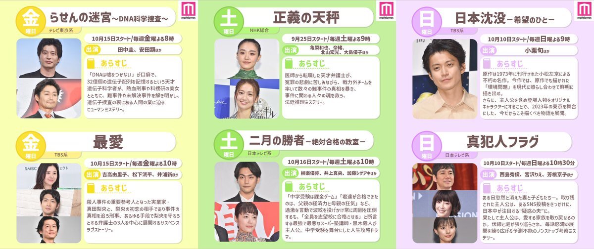 / 🍁2021年秋ドラマ もうチェックした🧐? \ この秋放送予定のドラマをご紹介✨ 皆さんが楽しみにしているドラマはなんですか?リプライで教えて下さい🥳 #ラジハ2 #恋です #すぱっち #らせんの迷宮 #さいあい #和田家の男たち #ごほうびごはん 🔻あらすじ&見どころ mdpr.jp/news/2784252 pic.twitter.com/tlsWrwgeao