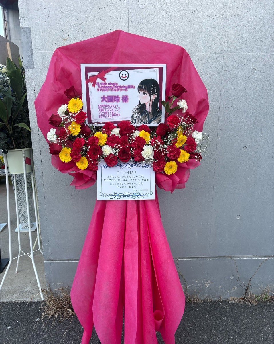 🌸 #櫻坂46_UnhappyBD構文 リアルミーグリ🎂 #大園玲 さんに祝花を贈らせていただきました* タイヨウくん、企画に参加してくださった玲ちゃん推しのみなさん本当にありがとうございました! イラストはちまるさん( @nmrnyai )に描いていただきました♪