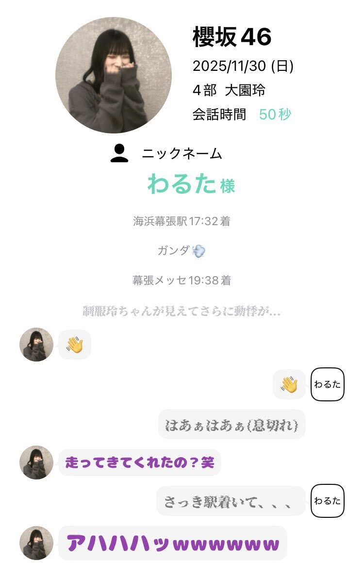 11/30 #櫻坂46_UnhappyBD構文 #ミーグリレポ 第4部 まじで間に合わないかと思ったけど、制服玲ちゃんに会えて良かった...! てかほんま玲ちゃんが何を言ってくれたのか...『恥ずかしいから』ってとんでもなく堕ちそうなこと言ってるやん。笑 #ぞのミーグリ #大園玲 pic.x.com/YA3CO5YGQV