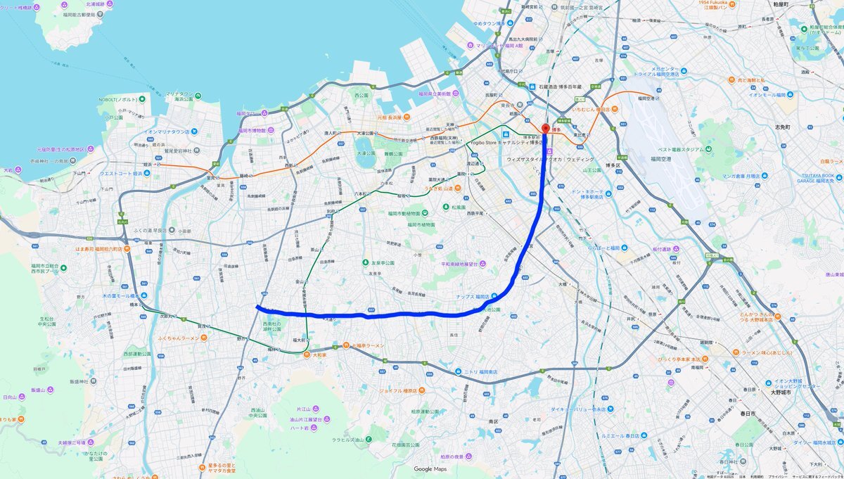福岡市、この青いラインの地下鉄欲しいな。 南区辺りが超巨大な鉄道空白地帯なの勿体なさすぎる。都心まで数キロ圏内なのに。 既存の道路・鉄道インフラのままでは人口が増加し続けても渋滞が悪化して市民のQOL下がりそう。 成長都市だからこそ攻めの都市経営をして欲しいな。