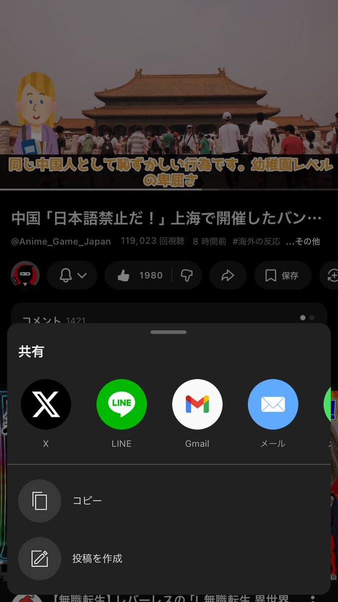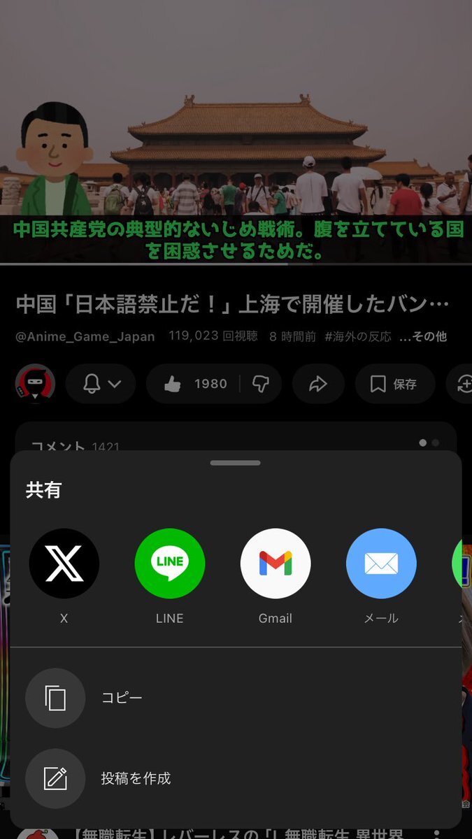 日本から全部禁輸して、日本に展開してる中華コンテンツ全部禁止したらええねん Yostarあたりどうなっても知らん() 中国「日本語禁止だ!」上海で開催したバンダイナムコで歌唱中の日本人を強制退場に世界から批判… youtu.be/CFJ4lSowDFE?si…